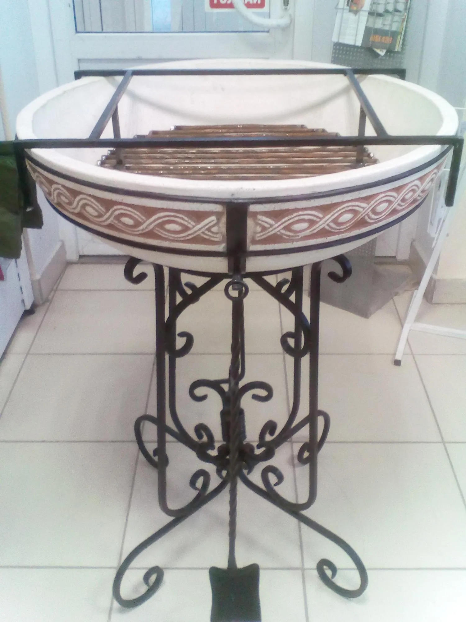 В комплекте: окованная керамическая чаша – 1 шт.; кованные ножки – 1 шт.; стальная перекладина с колосником – 1 шт.; комплект для чистки барбекю (совок – 1 шт., кочерга – 1 шт.).