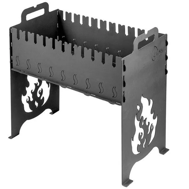 Большая толщина стенок (3-миллиметровая сталь) уменьшает деформацию металла и увеличивает срок службы мангала, а также делает жар углей более равномерным.