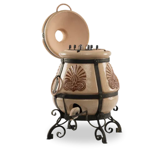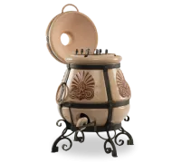 Уж кто-кто, а греки точно знают толк в здоровой, питательной и при этом незатейливой еде. Вот и тандыр Греческий на первый взгляд прост, однако присмотритесь поближе: многократный «вау-эффект», как сейчас говорят, гарантирован. Стильный узор, покрытый красивой глазурью, термометр на большой крышке тандыра, высокие, устойчивые кованые ножки, удобный механизм откидывания большой крышки, камень-жароотсекатель в комплекте, 10 шампуров с удобными зажимами. Так что готовить, а точнее гурманить, с новым ЭкоТандыром Греческий станет точно проще, вызывая «вау-эффект» от приготовленного.