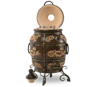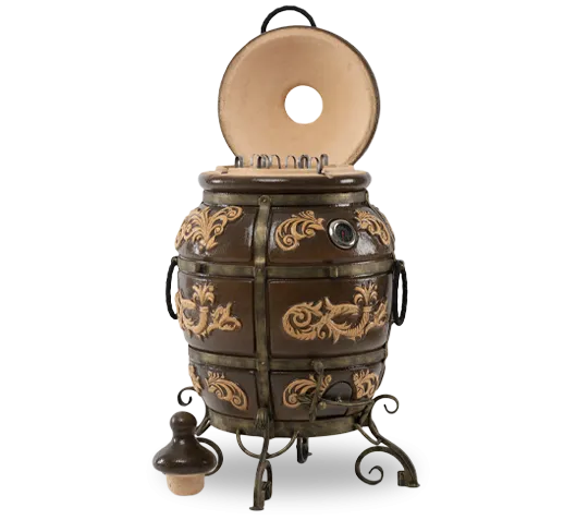 ВЭКО Тандыре Персидский есть все самое необходимое: большой размер, удобная большая горловина, устойчивые кованые ножки, специальные шампуры с зажимами рассчитанные на две закладки шашлыка. Это прекрасное дополнение любого загородного дома. Потому что это возможность удивить роскошным и при этом полезным предметом. И без того богатая комплектация модели 2018 года дополнена термометром на корпусе тандыра.