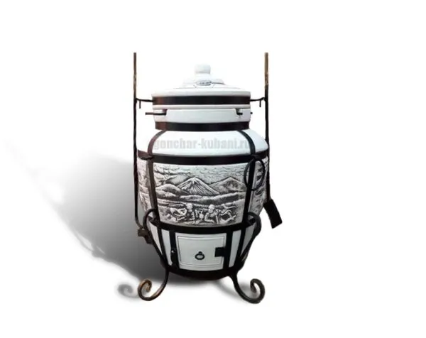 В наборе с тандыром идут шампуры и “солнышко” – держатель для казана. На него также можно закрепить шампуры в вертикальном положении.